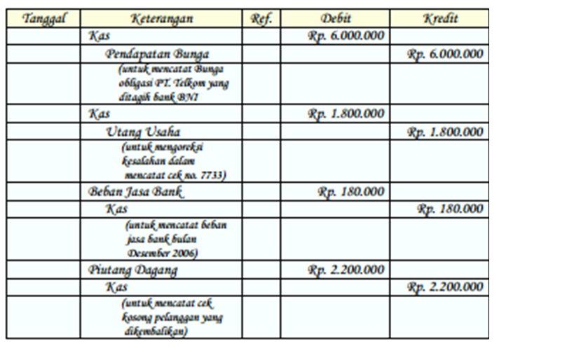 1. Buatlah rekonsiliasi bank per tanggal 31 Desember 2006!